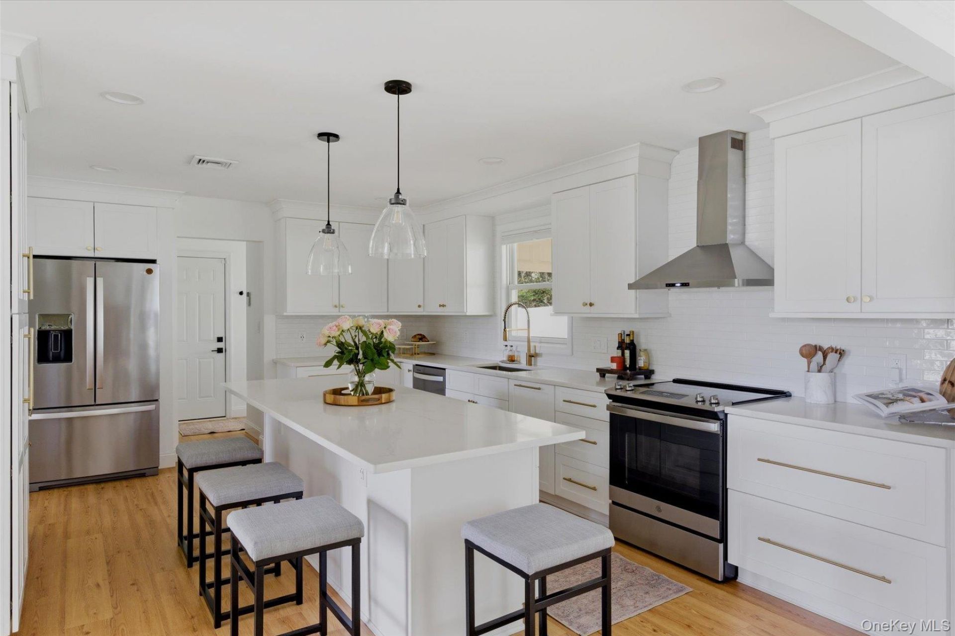 Set on nearly a half an acre on a tree-lined street, this beautifully reimagined East Northport colonial pairs timeless architecture with sophisticated modern living. Extensively renovated over the past four years, the home offers a rare blend of elevated design, effortless functionality and turnkey comfort. At the center of the home, a stunning designer kitchen serves as both a showpiece and gathering place, anchored by an oversized quartz island, soft close cabinetry, stainless steel appliances, and refined finishes throughout. The kitchen opens seamlessly to expansive living and dining spaces, with a coveted open flow rarely found in a traditional colonial, while a laundry room and powder room complete the main level. The primary suite is a true retreat, highlighted by a spa-like bath with an oversized 6'x6' walk-in shower, soaking tub, and double vanity. An adjoining private sitting room or dressing retreat enhances the suite's sense of luxury and flexibility. Two additional bedrooms and a beautifully renovated bath complete the second level. Outside, a flat, fully fenced backyard creates an exceptional setting for entertaining and effortless indoor-outdoor living. Impeccably maintained and thoughtfully curated throughout, this is a home of exceptional comfort, quality, and understated luxury.